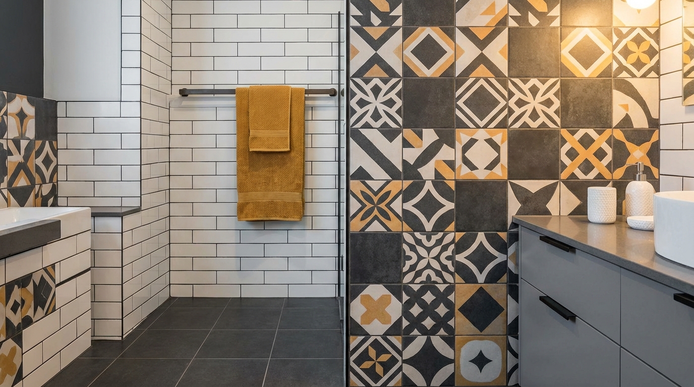 | Wall tile | White or off-white, simple layout | Multiple bold colors and patterns |