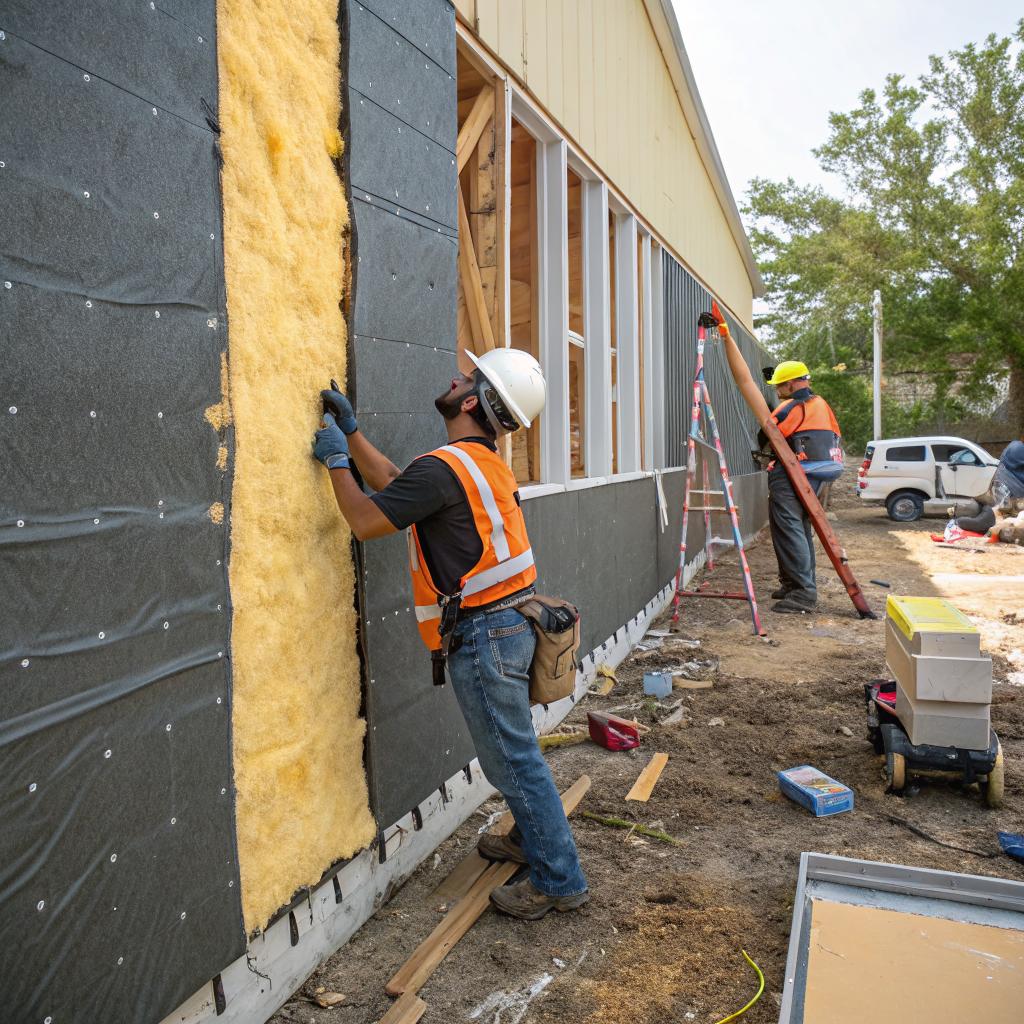 - Before painting and flooring, new insulation is installed in the cleared zones, with attention to sealing and depth.